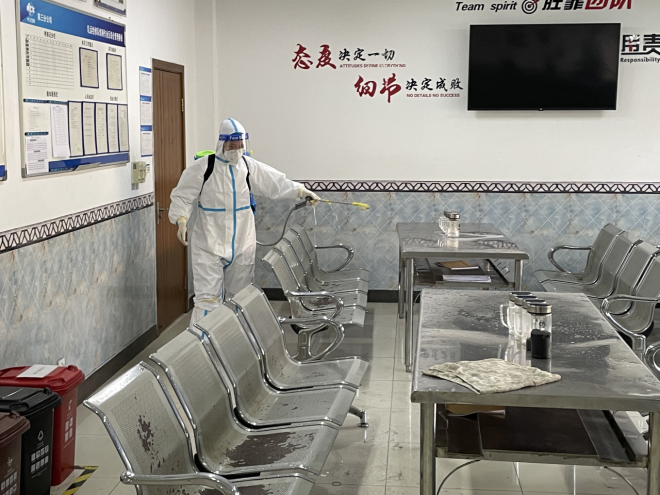 嚴把“人員流動關”。根據疫情防控需要,對辦公、生產、生活區域嚴格封閉管理,管理人員進駐作業現場和員工生活區,提供24小時值班服務,加強工作場所進出人員身份驗證,做到人員在崗位上不流動、休息區免聚集、上下班強防護。