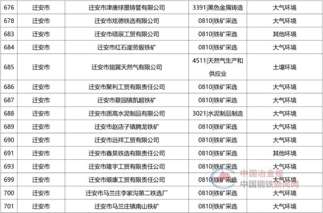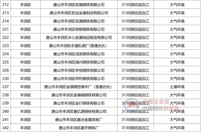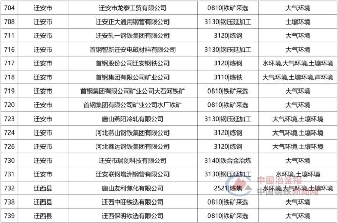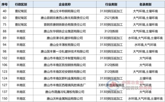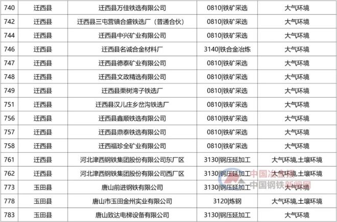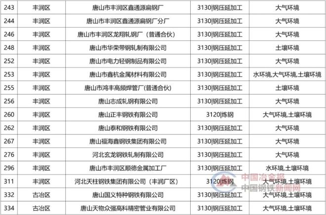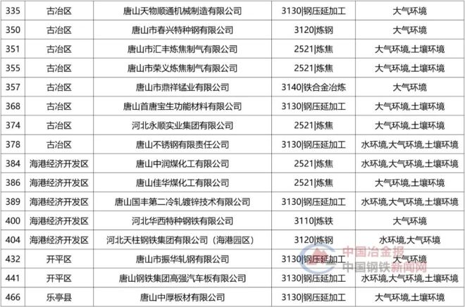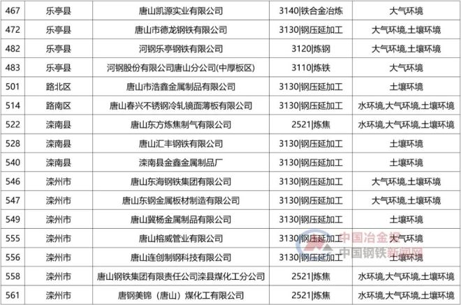 唐山市2022年重點排污單位名單出爐!涉及鋼鐵相關企業181家