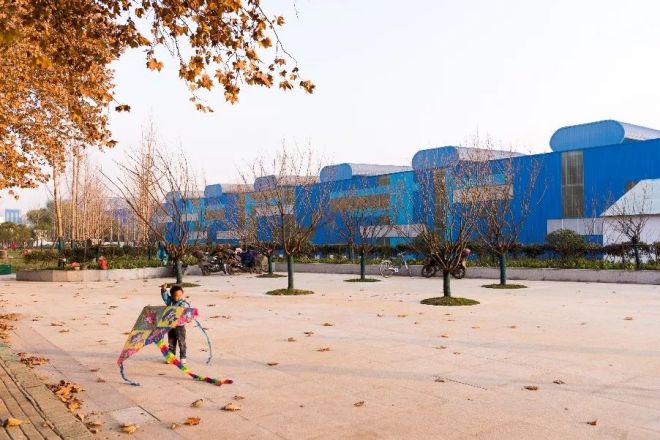 鄂鋼廠區(qū)北側(cè)為鄂州市主干道武昌大道,大道北側(cè)有較多居住區(qū),居民大多是為鄂鋼奉獻(xiàn)多年的老職工。設(shè)計(jì)團(tuán)隊(duì)打破傳統(tǒng)封閉廠區(qū)的概念,提出空間共享理念,由鄂鋼拆除部分老舊建筑及設(shè)施,將廠區(qū)北側(cè)圍墻向內(nèi)收縮20米,形成一條綿延一公里的開放式綠廊,并在綠廊內(nèi)建設(shè)休閑廣場(chǎng)和健身步道,為企業(yè)員工和鄂州市民提供一個(gè)交流、休憩、健身的綠色共享空間。企業(yè)反哺城市,廠城共享資源,完成了解決產(chǎn)城共融問題的一次生動(dòng)實(shí)踐。