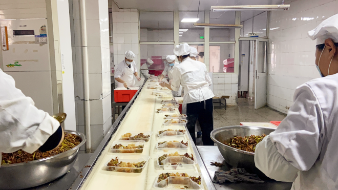 中冶寶鋼統(tǒng)一采購床被、睡袋等生活物資80000余件(套),安置4000余名員工廠區(qū)內(nèi)住宿;儲備充足的糧油、蔬菜、方便食品等15噸,落實員工工作餐加工制作封閉管理,確保食品安全;細化工作餐配送方案,每日向生產(chǎn)一線供應(yīng)10000余份安全可靠的餐飲,為全體員工提供優(yōu)質(zhì)的后勤服務(wù)和充足的生活供給,可同時滿足廠內(nèi)員工和宿舍區(qū)域人員生活需求;協(xié)調(diào)通勤車,保障近400名員工每日點對點上下班交通封閉管理。