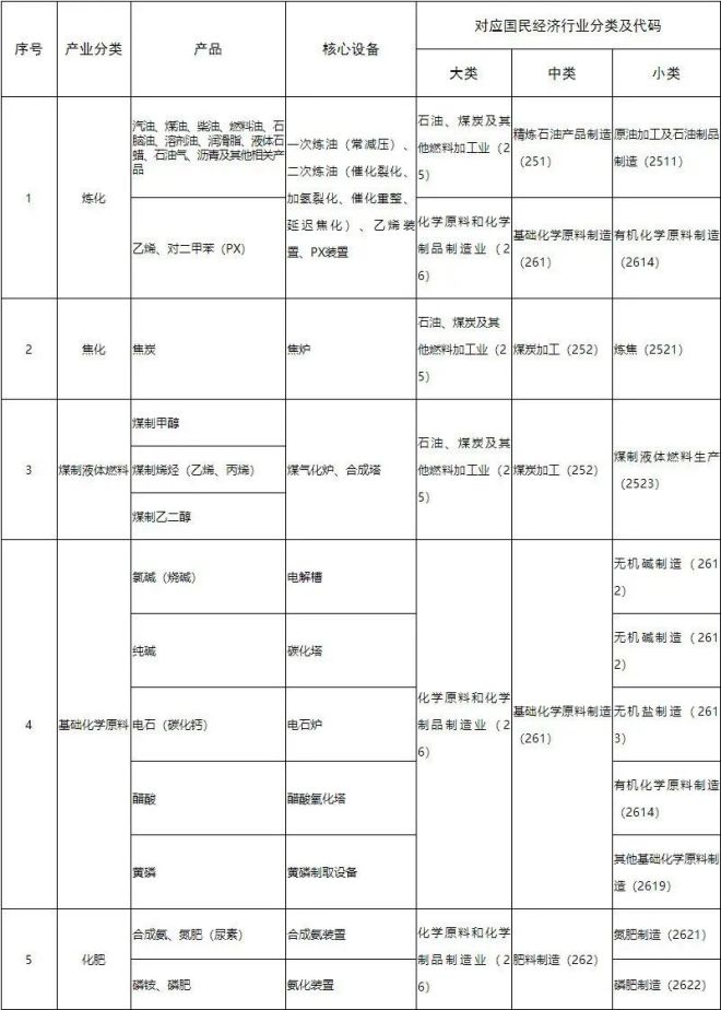 說明:1.“兩高”項目范圍以產品和核心設備界定;