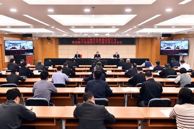 4月8日下午,碳達峰碳中和工作領導小組辦公室召開電視電話會議,通報碳市場數據造假有關問題,部署嚴厲打擊碳排放數據造假行為、推進碳市場健康有序發展工作。國家發展改革委副主任胡祖才出席會議并講話,生態環境部副部長葉民通報有關問題,國家發展改革委副秘書長蘇偉主持會議。