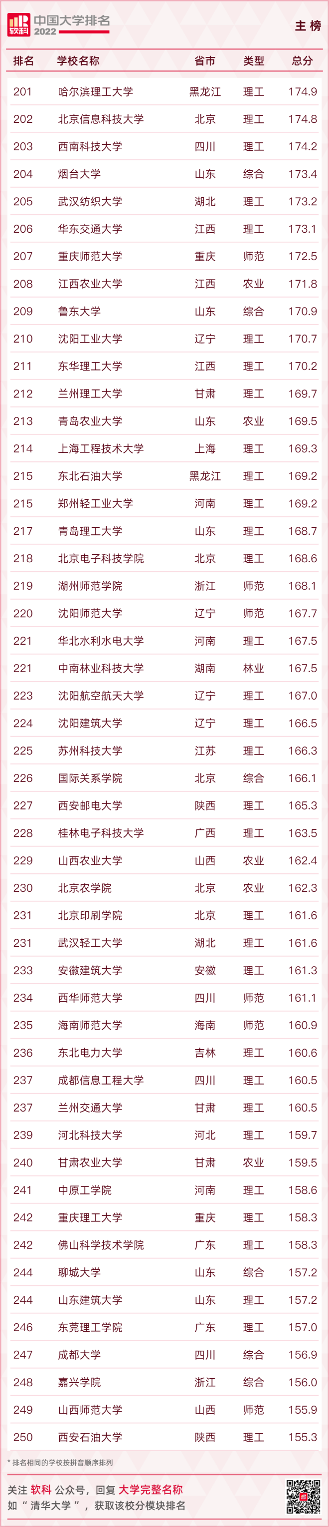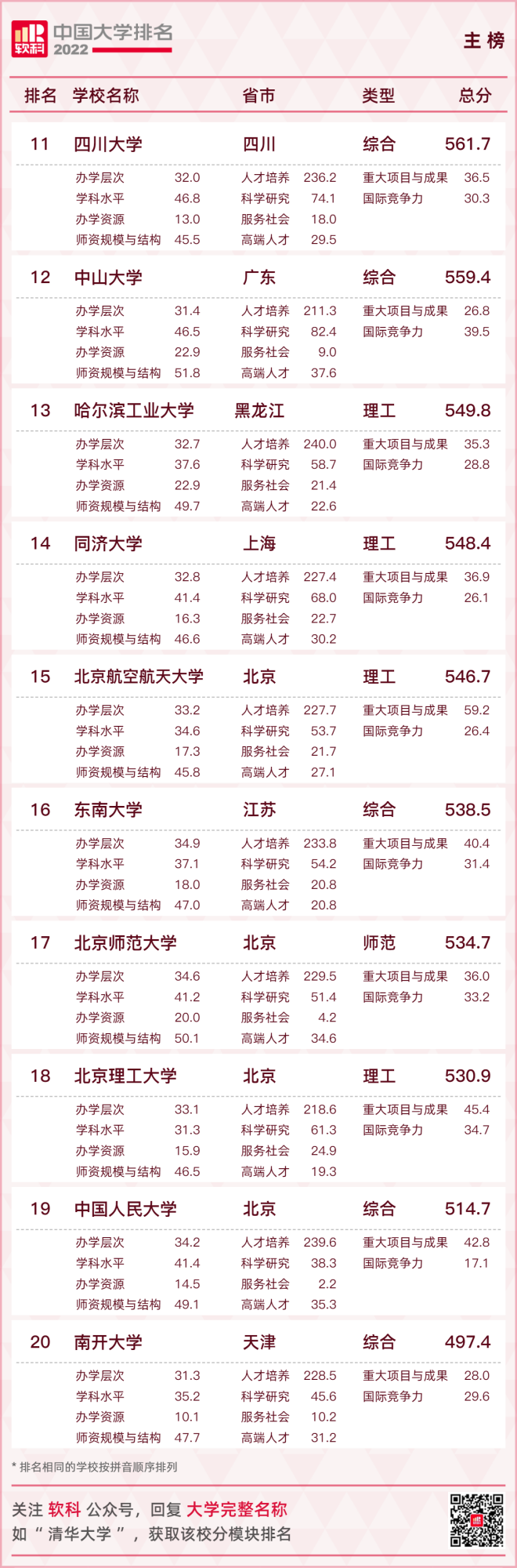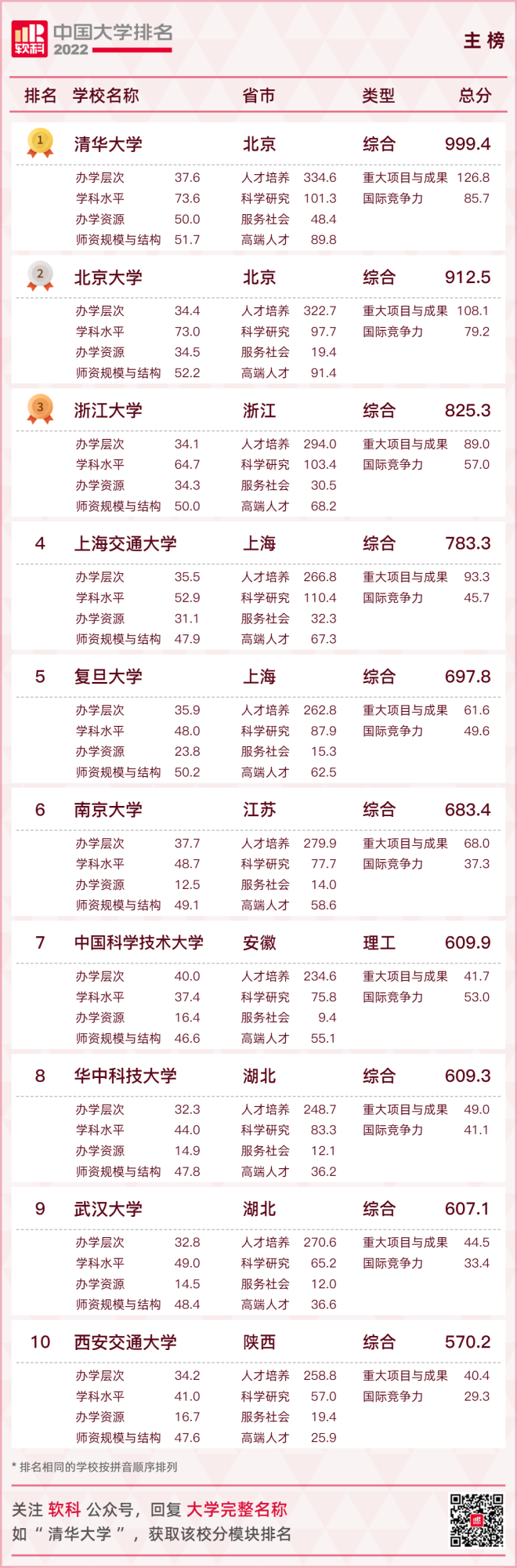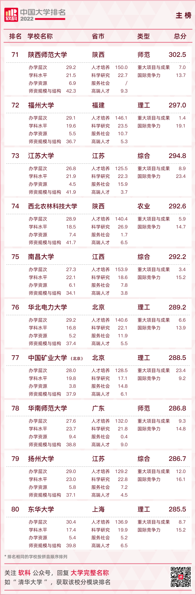 【2022軟科中國大學排名(主榜)】