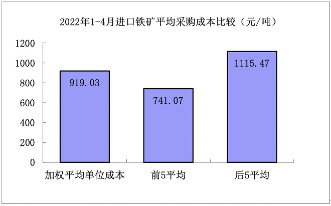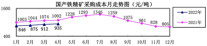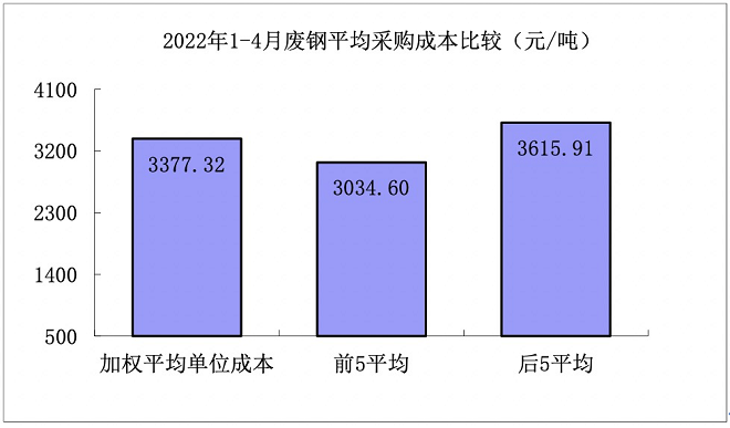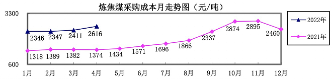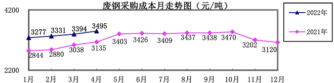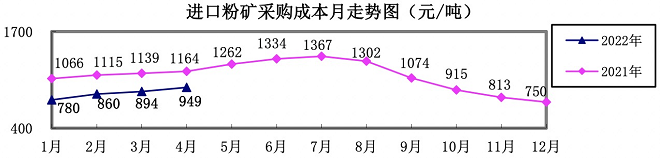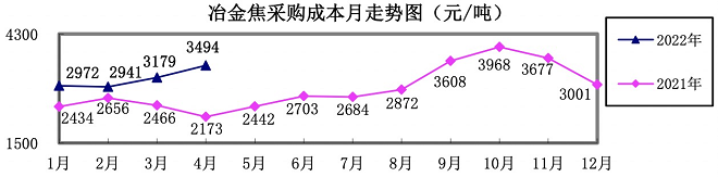 2022年4月,煤焦和鐵礦石、廢鋼采購成本繼續(xù)上升。