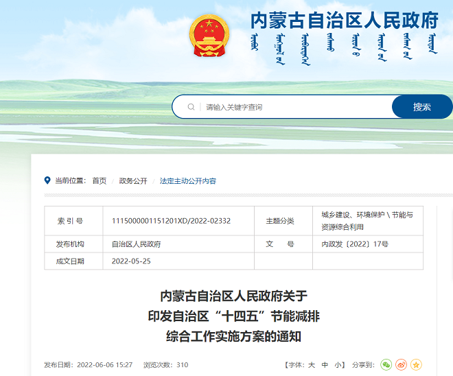 內蒙古自治區“十四五”節能減排綜合工作實施方案
