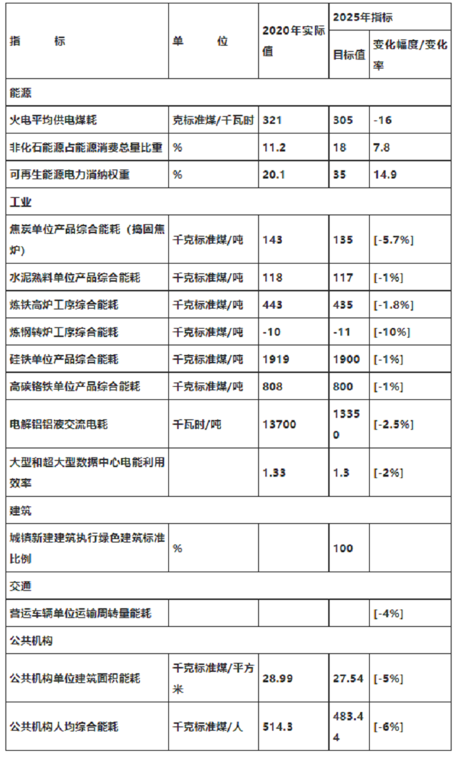 附件2 內蒙古自治區“十四五”主要行業節能指標