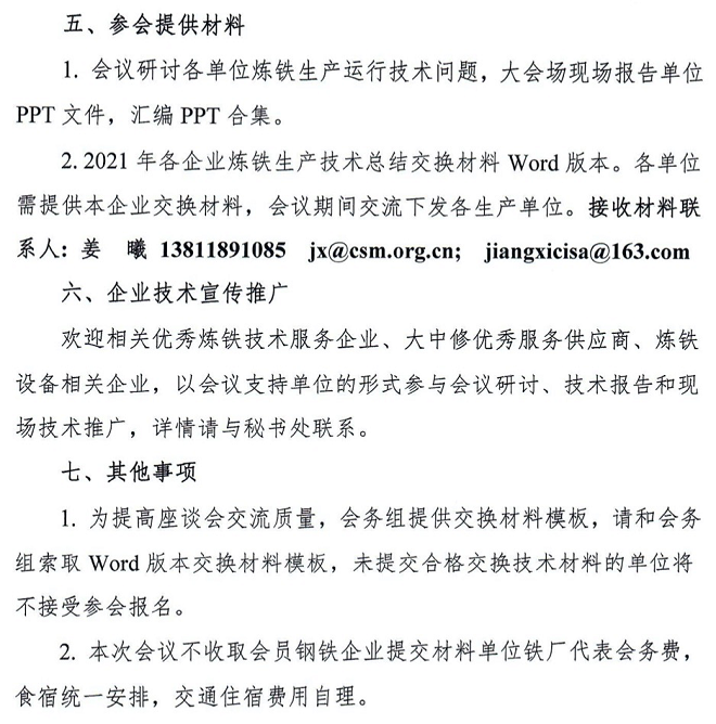 附件3. 第四屆全國煉鐵廠長技術座談會原通知更新及主要內容