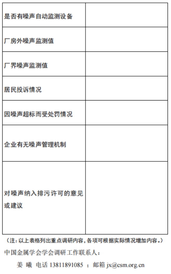 中國金屬學(xué)會關(guān)于開展鋼鐵企業(yè)噪聲污染現(xiàn)狀調(diào)研的通知