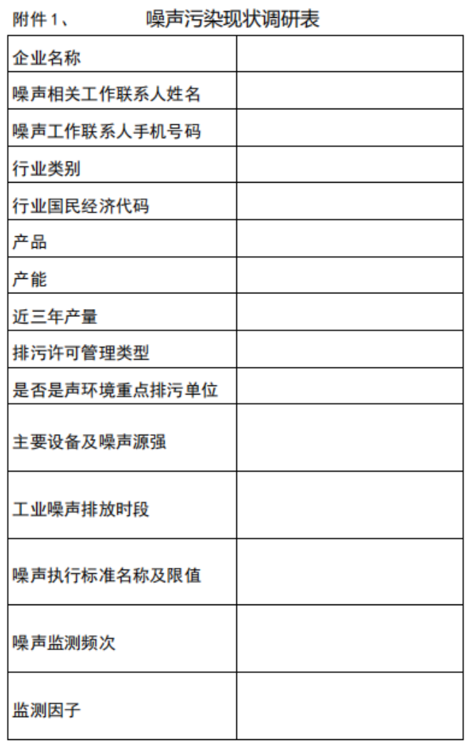 附件1、噪聲污染現(xiàn)狀調(diào)研表