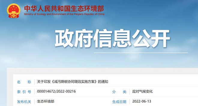 6月13日,生態環境部辦公廳印發《減污降碳協同增效實施方案》(以下簡稱《方案》)。