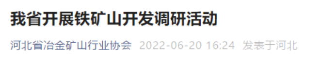 6月20日,從河北省冶金礦山行業(yè)協(xié)會(huì)公眾號(hào)獲悉,6月14日—18日,河北省發(fā)改委組織省冶金礦山行業(yè)協(xié)會(huì)、河北省宏觀經(jīng)濟(jì)研究院等單位組成調(diào)研組赴承德、秦皇島、唐山3市6縣(市)以及河鋼集團(tuán)礦業(yè)公司進(jìn)行調(diào)研。