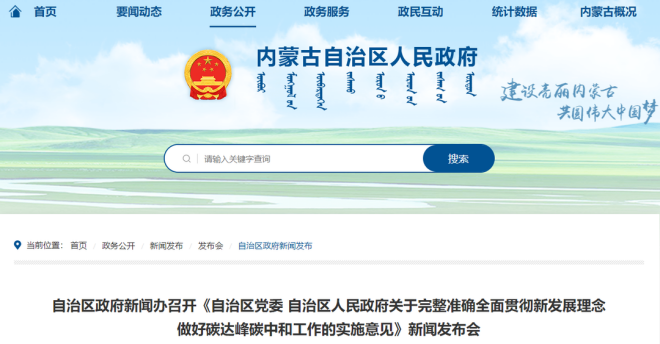6月30日,內蒙古自治區人民政府網站發布了自治區政府新聞辦召開《自治區黨委 自治區人民政府關于完整準確全面貫徹新發展理念做好碳達峰碳中和工作的實施意見》新聞發布會一文。