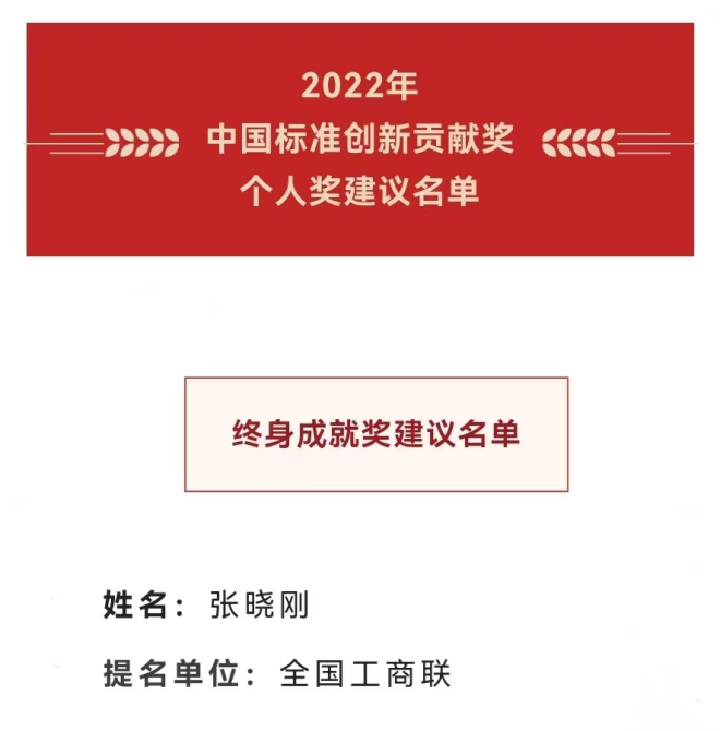 從《公示》中獲悉,國際標準化組織原主席、世界鋼鐵協會原主席張曉剛獲2022年中國標準創新貢獻獎終身成就獎,且是唯一獲此殊榮的個人。