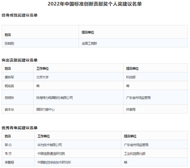 近日,國家市場監督管理總局發布了《關于2022年中國標準創新貢獻獎評審委員會建議名單的公示》(以下簡稱“《公示》”),將通過評審的標準項目獎、組織獎和個人獎建議名單及相關信息進行公示。