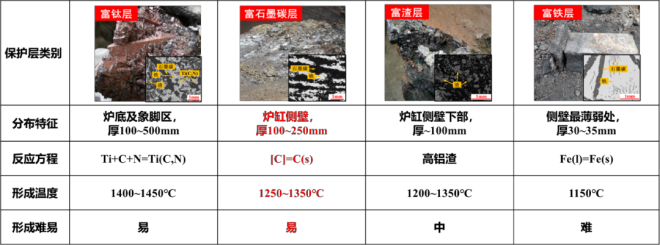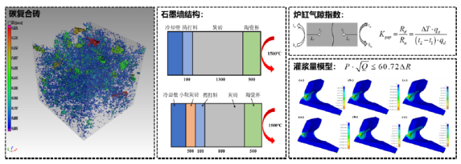 研發了兼具炭磚高導熱與陶瓷材料高耐蝕、且利于石墨碳沉積的碳復合耐火材料;同時開發了解決爐缸氣隙難題的石墨墻結構及氣隙治理優化技術,為石墨碳的析出奠定基礎。