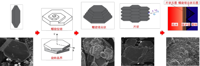 揭示了富石墨碳保護層形成機制,建立了富石墨碳保護層生成模型,并解析了保護層形成動力學規律。提出了以“石墨碳析出勢”為判定標準的護爐診斷技術,同時明確了爐缸鐵液達到碳飽和,與耐材熱面溫度低于保護層形成溫度是富石墨碳保護層形成的兩個必要條件,可以通過調控爐缸活性促進鐵液滲碳和優化爐缸傳熱體系促進鐵液析碳兩個必要措施形成保護層,實現爐缸自修復。