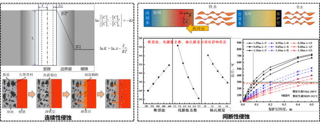 建立了高爐爐缸炭磚連續性侵蝕速率方程,明確溫度和碳含量等因素對炭磚侵蝕影響機制;明晰高爐爐缸炭磚間斷性侵蝕影響機制,揭示爐缸保護層消蝕及生成對炭磚微裂紋形成影響規律。