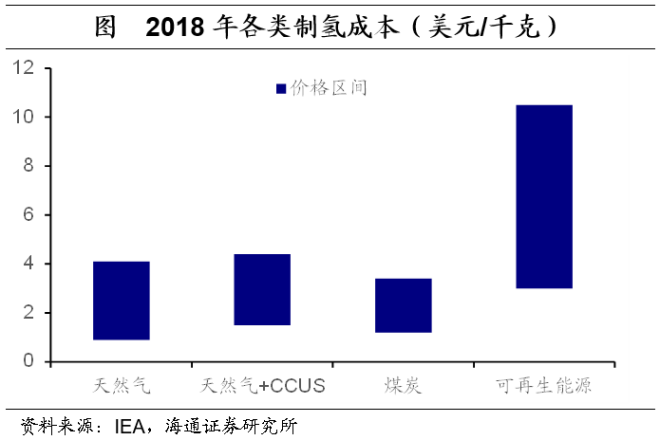 雖然我國的氫氣價格并不算高,但需要注意,這一方面是由于我國氫氣供給目前以煤制氫為主,根據國際能源署的數據,2018年煤制氫的價格約在1.2-2.2美元/千克,而綠氫的價格高達3-7.5美元/千克,所以短期氫價相對較低。另一方面,是由于目前政府在消費用氫上給予大量補貼,實際中用氫價格僅為40元/千克左右,但補貼難以長期維持。如果未來綠氫占比提高、補貼金額減少,氫氣價格或將出現明顯的抬升。
