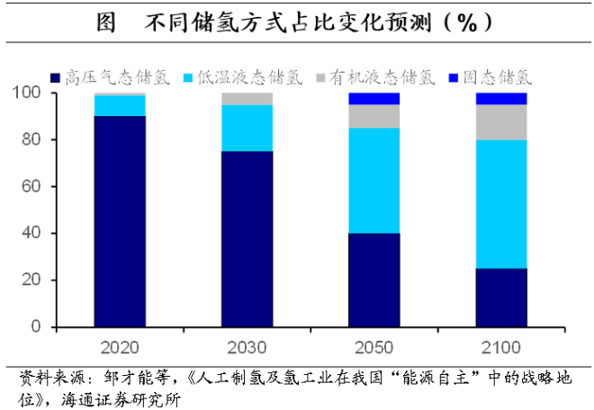 根據《中國氫能源及燃料電池產業白皮書(2019)》的技術路線展望,“低壓到高壓、氣態到多相態”是氫氣儲運未來的發展方向。根據鄒才能等(2019)的預測,到2050年,我國液態儲運的比例將從2020年的10%提高到55%,而這就需要在氫氣液化相關技術方面的大量投入。