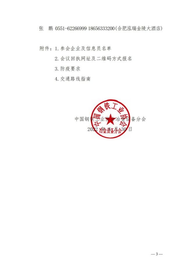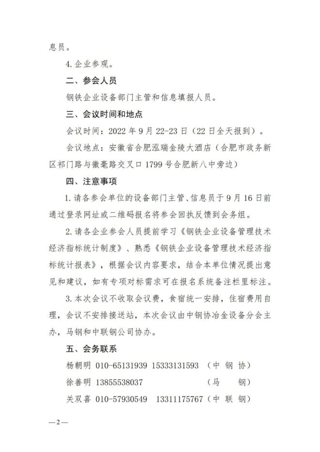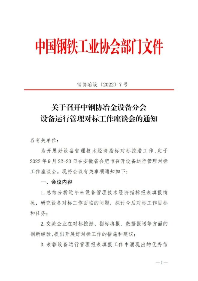 關(guān)于召開中鋼協(xié)冶金設(shè)備分會設(shè)備運行管理對標工作座談會的通知