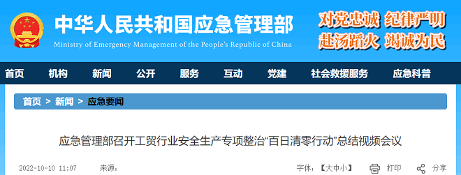 10月9日,應(yīng)急管理部以視頻方式召開(kāi)工貿(mào)行業(yè)安全生產(chǎn)專項(xiàng)整治“百日清零行動(dòng)”總結(jié)會(huì)議,深入學(xué)習(xí)貫徹習(xí)近平總書記關(guān)于安全生產(chǎn)重要指示精神,落實(shí)全國(guó)安全生產(chǎn)電視電話會(huì)議部署,總結(jié)“百日清零行動(dòng)”工作成效,安排部署下一階段重點(diǎn)工作。應(yīng)急管理部黨委委員、副部長(zhǎng)宋元明在主會(huì)場(chǎng)出席會(huì)議并講話。