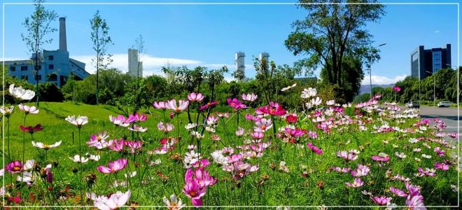 八鋼廠區盛開的格桑花。(姚海山 攝)