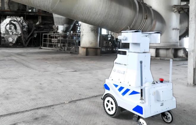 八鋼歐冶爐巡檢機器人“小白”在高爐爐頂進行巡檢作業。(姚海山 攝)