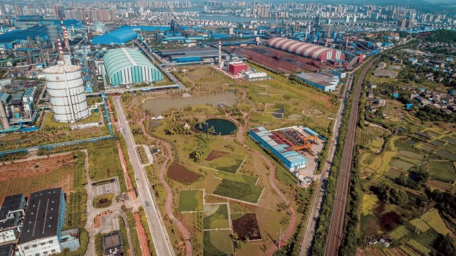 圖為寶武集團鄂城鋼鐵廠區俯瞰。(鄂鋼 供圖)