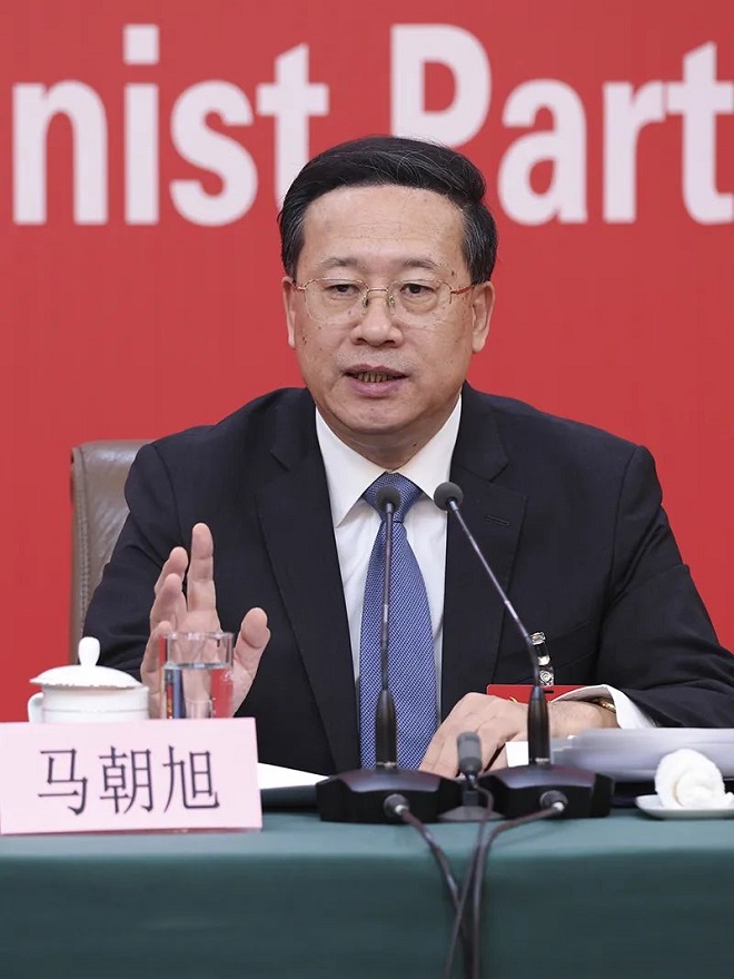 圖為馬朝旭在記者招待會(huì)上。新華社記者張玉薇 攝