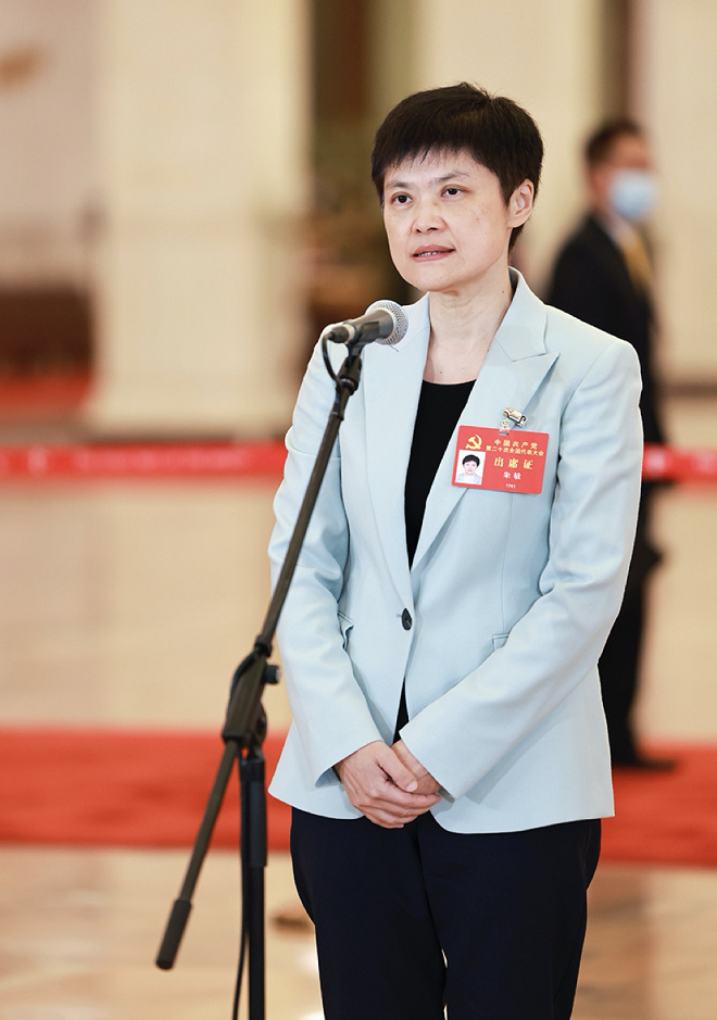 圖為朱敏代表接受采訪。新華社記者 邢廣利 攝