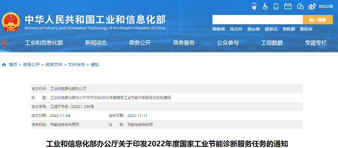 近日,工業(yè)和信息化部網(wǎng)站發(fā)布了《工業(yè)和信息化部辦公廳關(guān)于印發(fā)2022年度國(guó)家工業(yè)節(jié)能診斷服務(wù)任務(wù)的通知》(以下簡(jiǎn)稱《通知》)。