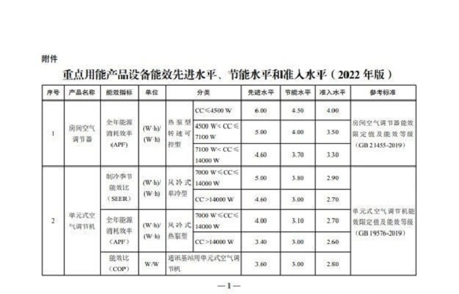 附件:重點用能產品設備能效先進水平、節能水平和準入水平(2022年版)