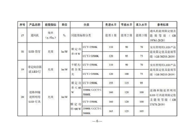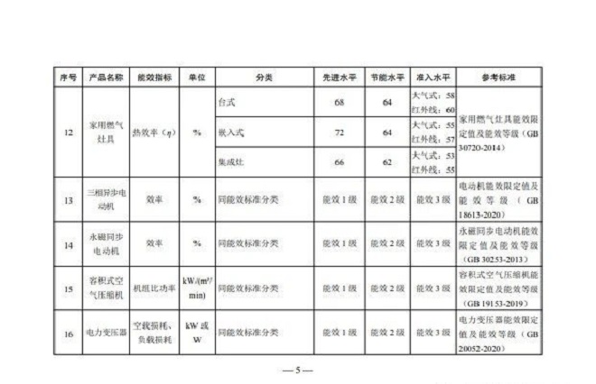 參考相關重點用能產品設備現行能效強制性國家標準,綜合考慮我國相關產業技術水平和發展階段,對標國內外同類產品設備先進能效水平,將有關產品設備能效水平劃分為先進水平、節能水平、準入水平三檔。準入水平為相關產品設備進入市場的最低能效水平門檻,數值與現行有關能效標準限定值一致;節能水平為不低于現行能效2級,與能效準入水平產品設備相比,更符合節能降碳工作要求,同時在3至5年內可轉化為下一階段的準入水平;先進水平為不低于能效1級,是當前相關產品設備所能達到先進能效水平。重點用能產品設備能效測試方法為相應國家標準的測試方法,涵蓋范圍將根據節能降碳工作需要適時調整和補充。重點用能產品設備能效的先進水平、節能水平、準入水平也將根據行業技術進步及能效標準制修訂情況,及時進行調整,持續推動重點用能產品設備能效提升。