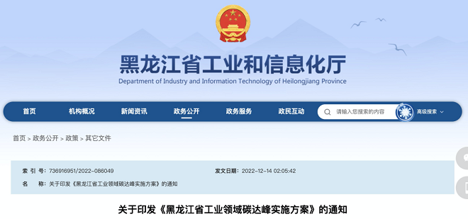 12月14日,黑龍江工業(yè)和信息化部網(wǎng)站發(fā)布了關(guān)于印發(fā)《黑龍江省工業(yè)領(lǐng)域碳達峰實施方案》的通知(以下簡稱《實施方案》)。