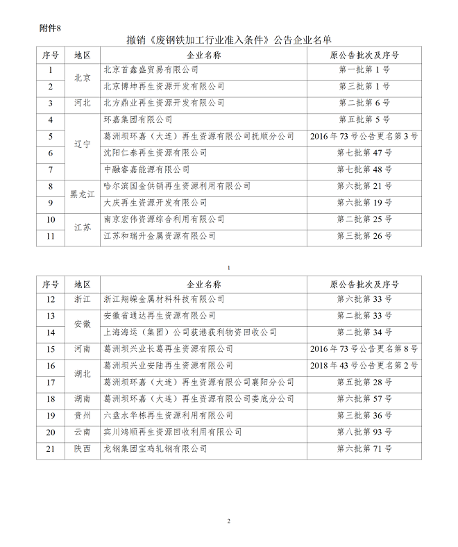 新一批符合《廢鋼鐵加工行業準入條件》企業名單公布——