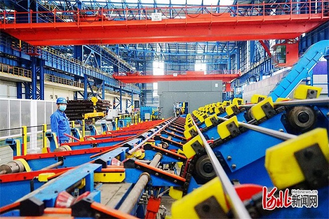 河鋼集團石鋼公司特鋼棒材銀亮線生產(chǎn)車間,正在生產(chǎn)高端銀亮材。高益芳攝