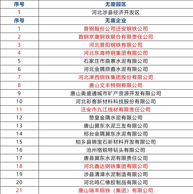 河北省公示21家“無廢企業(yè)”:首鋼遷鋼、首鋼京唐、普陽鋼鐵、東海特鋼、津西、文豐特鋼、九江線材、鑫達(dá)、瑞豐鋼鐵等上榜