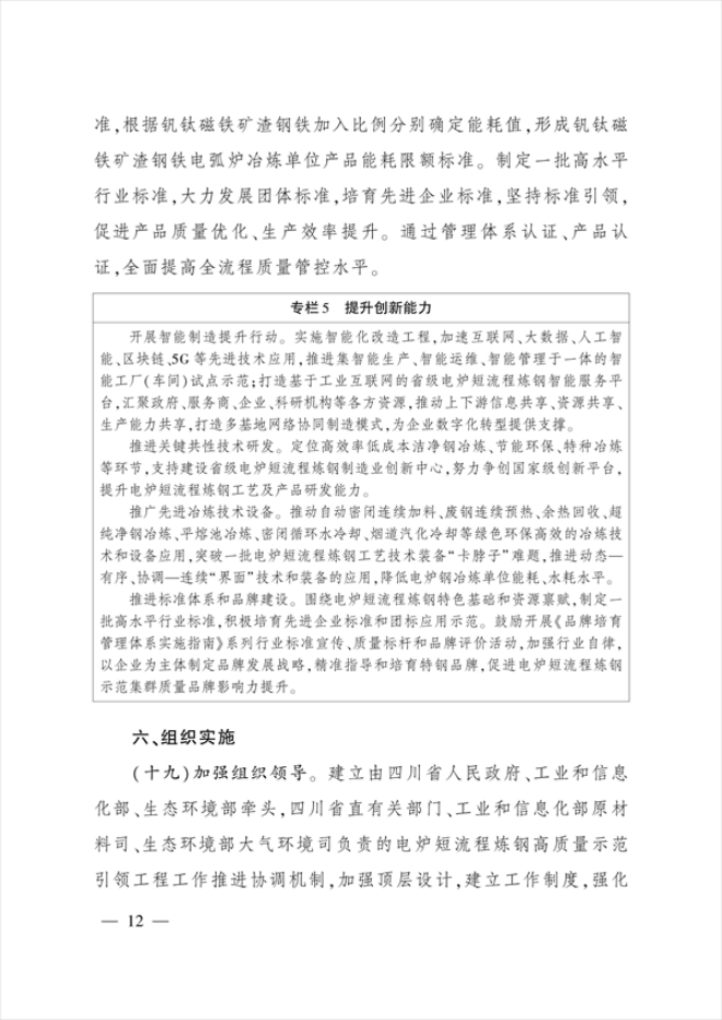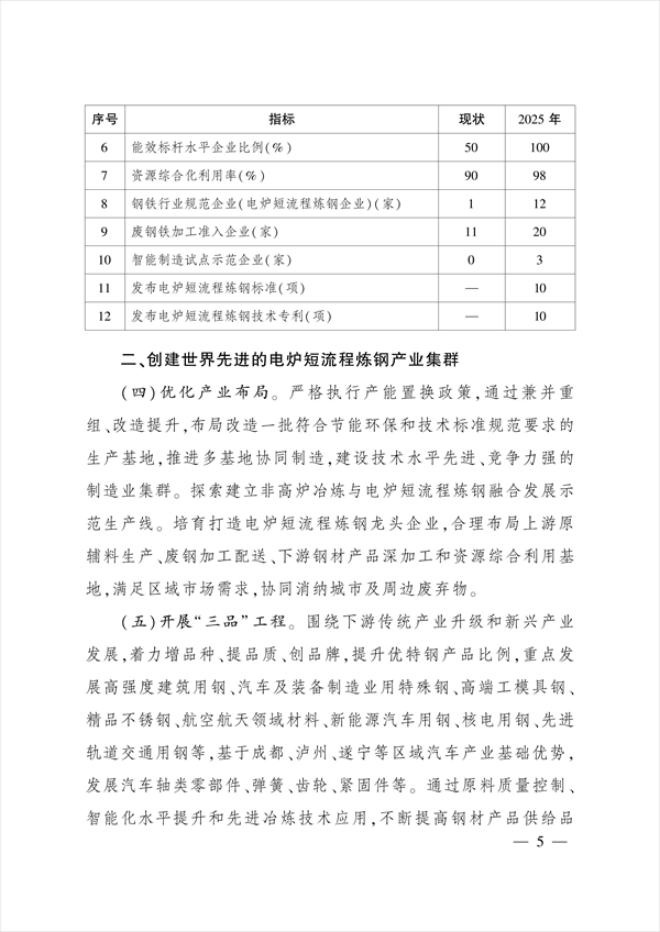 12月27日,四川省人民政府、工業(yè)和信息化部、生態(tài)環(huán)境部聯(lián)合印發(fā)了《開展電爐短流程煉鋼高質量發(fā)展引領工程的實施方案》(以下簡稱《實施方案》),充分發(fā)揮四川省電爐短流程煉鋼產(chǎn)業(yè)基礎好、水電等清潔能源豐富、廢鋼資源稟賦突出等優(yōu)勢,先行先試,加快推動電爐短流程煉鋼轉型升級。電爐短流程煉鋼工藝具有突出的綠色低碳優(yōu)勢,是鋼鐵行業(yè)減污降碳協(xié)同增效的重要技術路線,推動四川省電爐短流程煉鋼發(fā)展,先行先試開展高質量發(fā)展引領工程,對全國鋼鐵行業(yè)實現(xiàn)雙碳目標具有積極的示范效應。到2025年,四川省電爐短流程煉鋼基本形成先進企業(yè)集群化發(fā)展、綠色低碳循環(huán)體系完善、資源保障能力顯著提升、智能化數(shù)字化水平先進的發(fā)展格局,探索綠色、智能、創(chuàng)新、高效、協(xié)調(diào)的發(fā)展模式,總結出一批新工藝、新技術、新標準實踐經(jīng)驗,助力全國鋼鐵行業(yè)綠色低碳轉型和高質量發(fā)展。