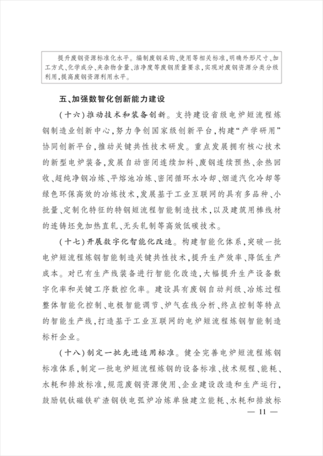 《實施方案》提出,要加快產(chǎn)業(yè)技術革新與標準化,加強數(shù)智化創(chuàng)新能力建設,促進短流程煉鋼產(chǎn)業(yè)創(chuàng)新發(fā)展。一是推動技術和裝備創(chuàng)新,二是開展數(shù)字化智能化改造,三是制定一批先進適用的標準。
