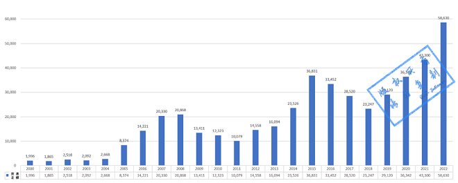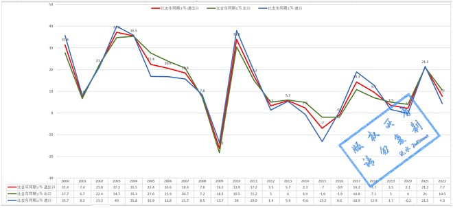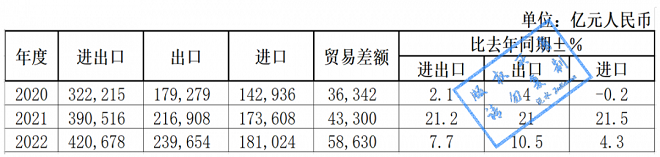據(jù)海關(guān)總署公布的統(tǒng)計數(shù)據(jù),2022年我國貨物貿(mào)易進出口總值42.07萬億元人民幣[1],比2021年增長7.7%。其中,出口總額為23.97萬億人民幣,比去年同期增長10.5%;進口總額為18.1萬億人民幣,比去年同期增長4.3%。