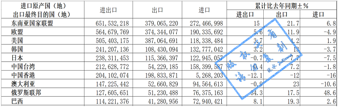 2022年,我國前十位的貿(mào)易伙伴依次是東盟、歐盟、美國、韓國、日本、中國臺灣、中國香港、澳大利亞、俄羅斯和巴西。
