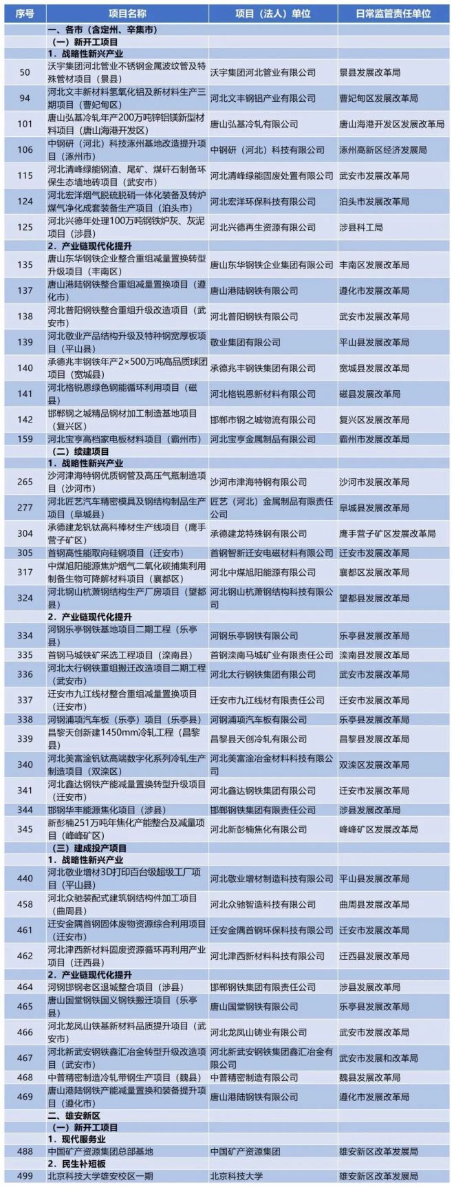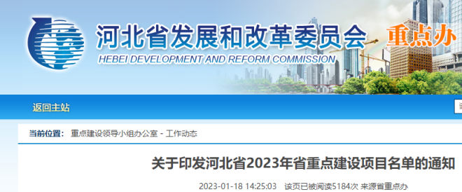 近日,河北省發展改革委網站發布《關于印發河北省2023年省重點建設項目名單的通知》(以下簡稱《通知》)。《通知》提到,2023年河北省重點建設項目名單已經省政府同意,由省重點建設領導小組辦公室印發。項目共計507項,總投資1.32萬億元,年度預計投資2600.1億元。經中國冶金報—中國鋼鐵新聞網小編整理,43個鋼鐵及相關項目在列——