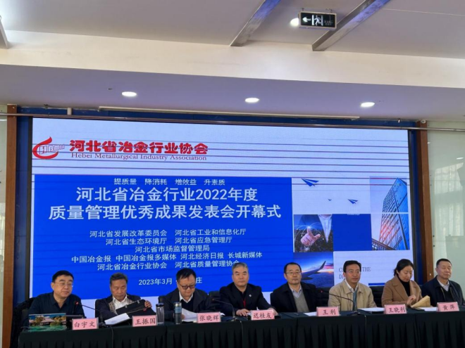 河北省發(fā)改委化解辦秘書處處長王利、河北省工信廳鋼鐵處處長張曉輝、河北省生態(tài)環(huán)境應(yīng)急與重污染天氣預(yù)警中心主任王曉利、河北省應(yīng)急管理廳總工程師王振國、河北省市場監(jiān)督管理局質(zhì)量發(fā)展局副局長黃萍、河北省質(zhì)量協(xié)會首席專家趙成波、河北省冶金行業(yè)協(xié)會執(zhí)行會長兼秘書長遲桂友出席會議并講話。河北省冶金行業(yè)協(xié)會常務(wù)副秘書長白宇文主持會議。