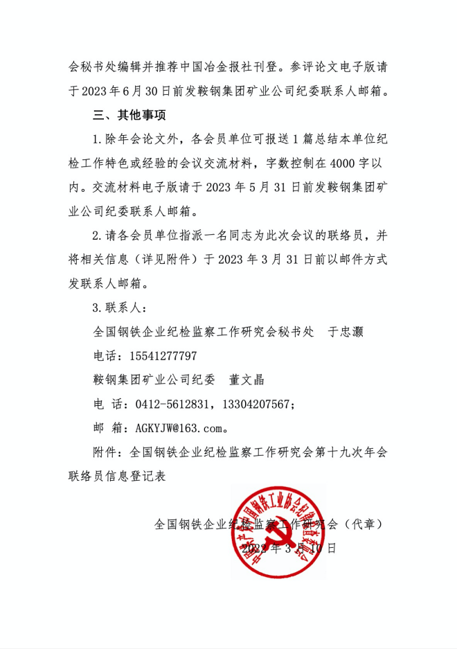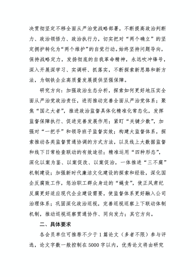 關于組織征集全國鋼鐵企業紀檢監察工作研究會第十九次年會論文的通知