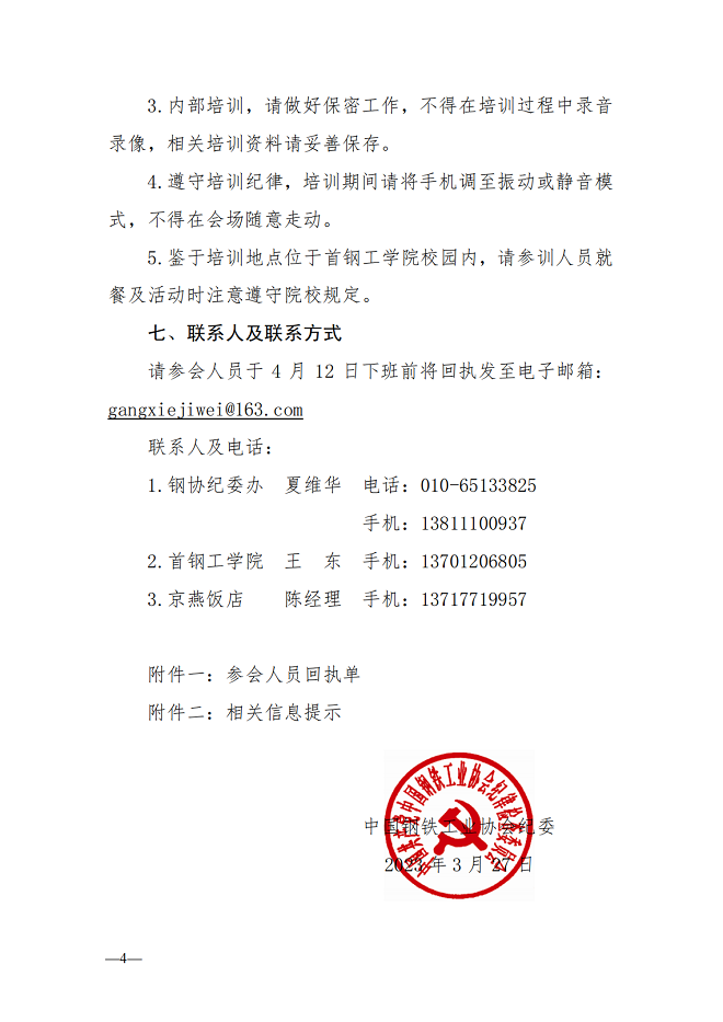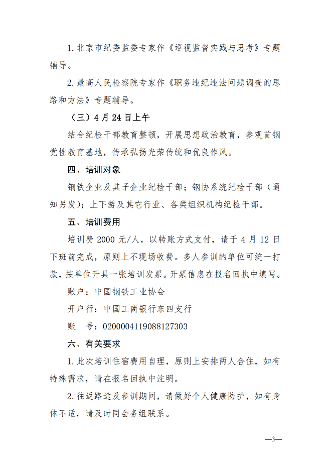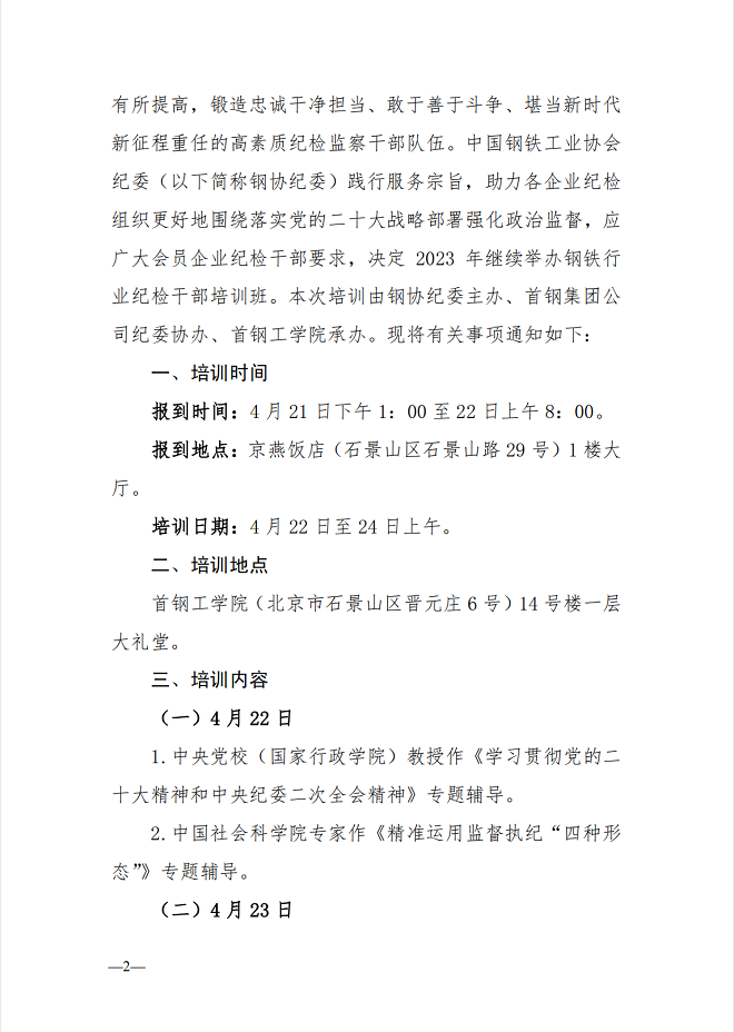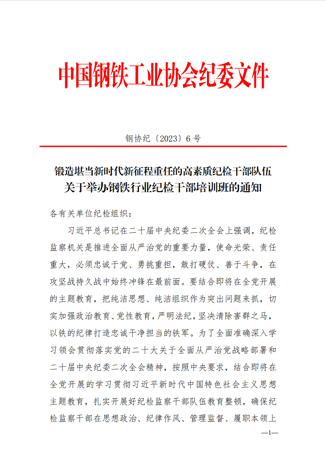 鍛造堪當新時代新征程重任的高素質紀檢干部隊伍 關于舉辦鋼鐵行業紀檢干部培訓班的通知