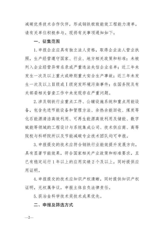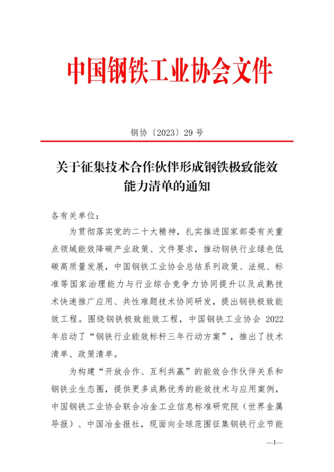 《通知》下載鏈接:關于征集技術合作伙伴形成鋼鐵極致能效能力清單的通知.pdf