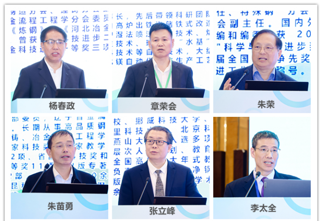 在學者論壇上,上海大學鐘云波教授、北京科技大學張炯明教授、中南大學周樂君教授、上海大學楊健教授、北京科技大學張新房教授、蘇州大學侯棟教授分別作了題為《高性能精/特鋼材料磁控超常冶金制備技術-進展與思考》《高品質長型材連鑄坯生產關鍵技術》《高拉速下不銹鋼連鑄結晶器卷渣控制研究》《低碳雙渣法轉爐煉鋼工藝與理論》《金屬熔體電磁凈化技術》《電渣重熔智能制造和百噸型電渣錠的熔煉新技術展望》的報告。