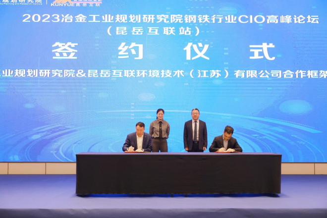 中國鋼鐵工業協會副總工程師黃導、江蘇省工信廳兩化融合處二級調研員張志平、鹽城市亭湖區區委副書記劉瑋、昆岳互聯環境技術(江蘇)有限公司(下稱昆岳互聯)執行總裁周玲霞為論壇致辭。冶金規劃院院長、黨委副書記范鐵軍為寧波鋼鐵有限公司、天津榮程聯合鋼鐵集團有限公司、福建三寶鋼鐵有限公司3家智能制造領先企業授牌,并舉行了冶金規劃院和昆岳互聯合作框架協議、《鋼鐵企業設備智能運維及故障診斷應用技術研究》技術咨詢合同簽訂儀式。