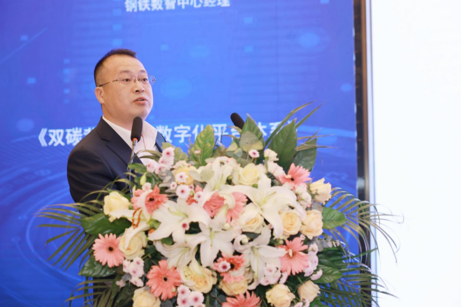 圖為梁越永做《數據賦能鋼鐵企業數字化轉型——大數據中心建設與應用創新》主題報告
