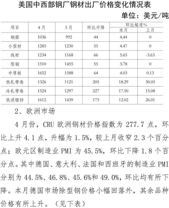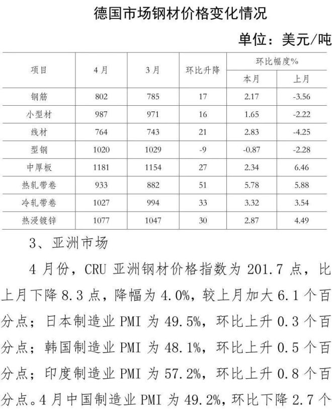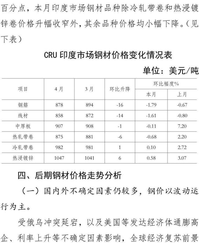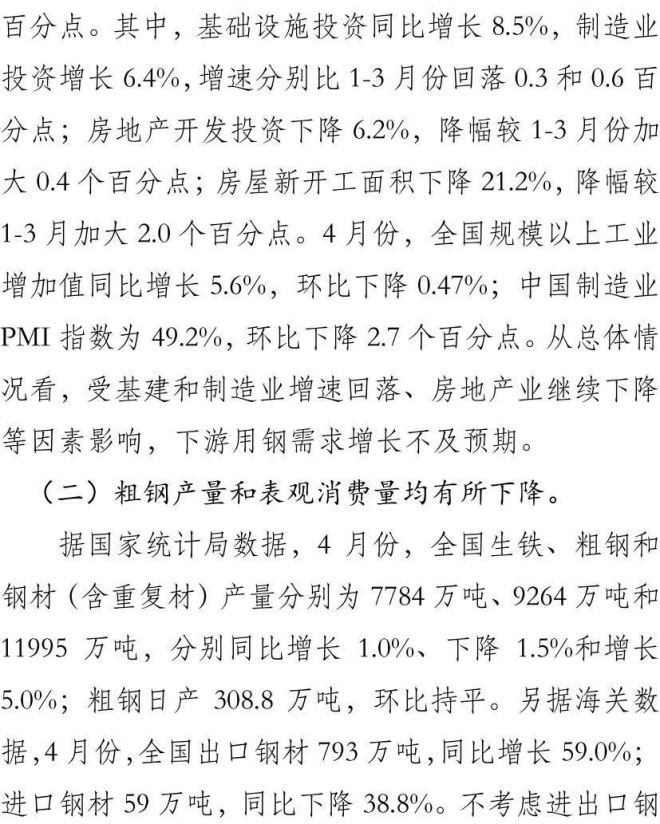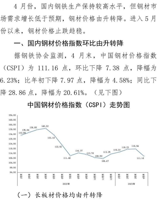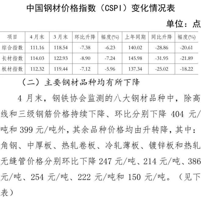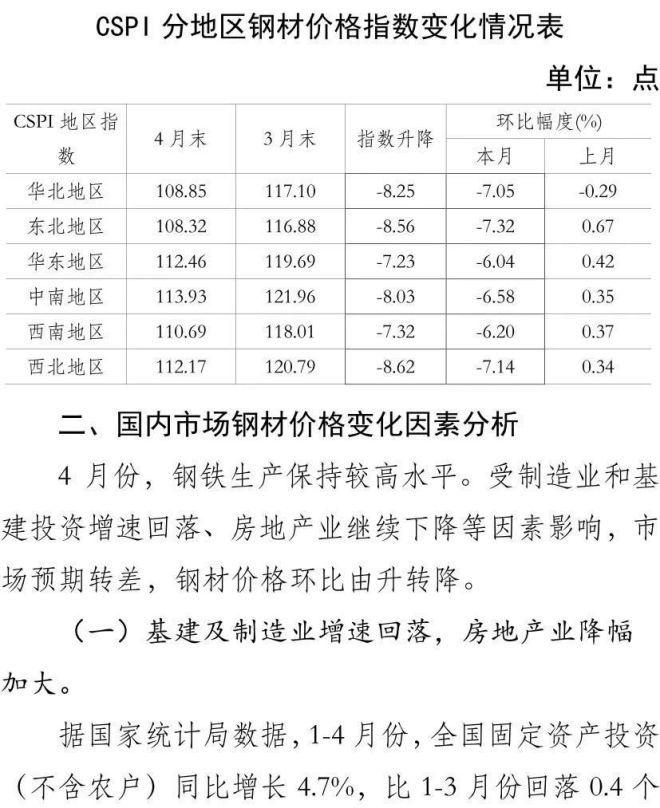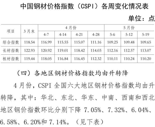 4月國內市場鋼材價格由升轉降,5月止跌趨穩